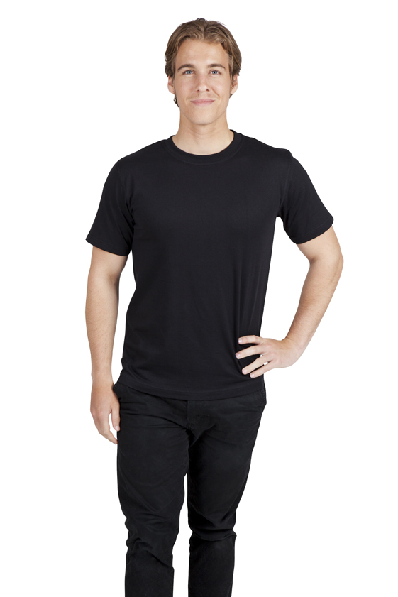 Ribbed crew neck, shoulder to shoulder tape, double needle bottom hem, preshrunk to minimise shrinkage