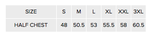 | Half Chest (cm) | 50 | 52 | 54 | 56.5 | 59 | 62 | 65 | 68 | 71 | 73.5 | 76 |